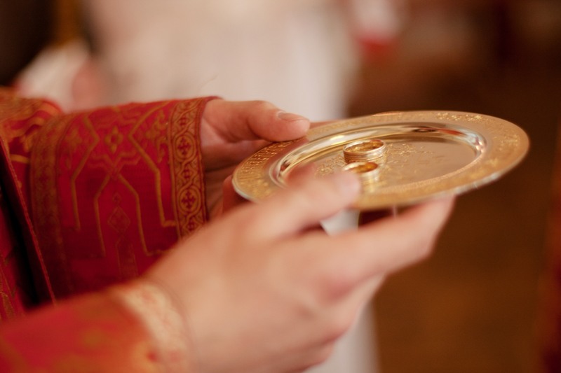 Обручальные кольца надо заранее отдать венчающему священнику, чтобы он освятил их возложением на Престол.